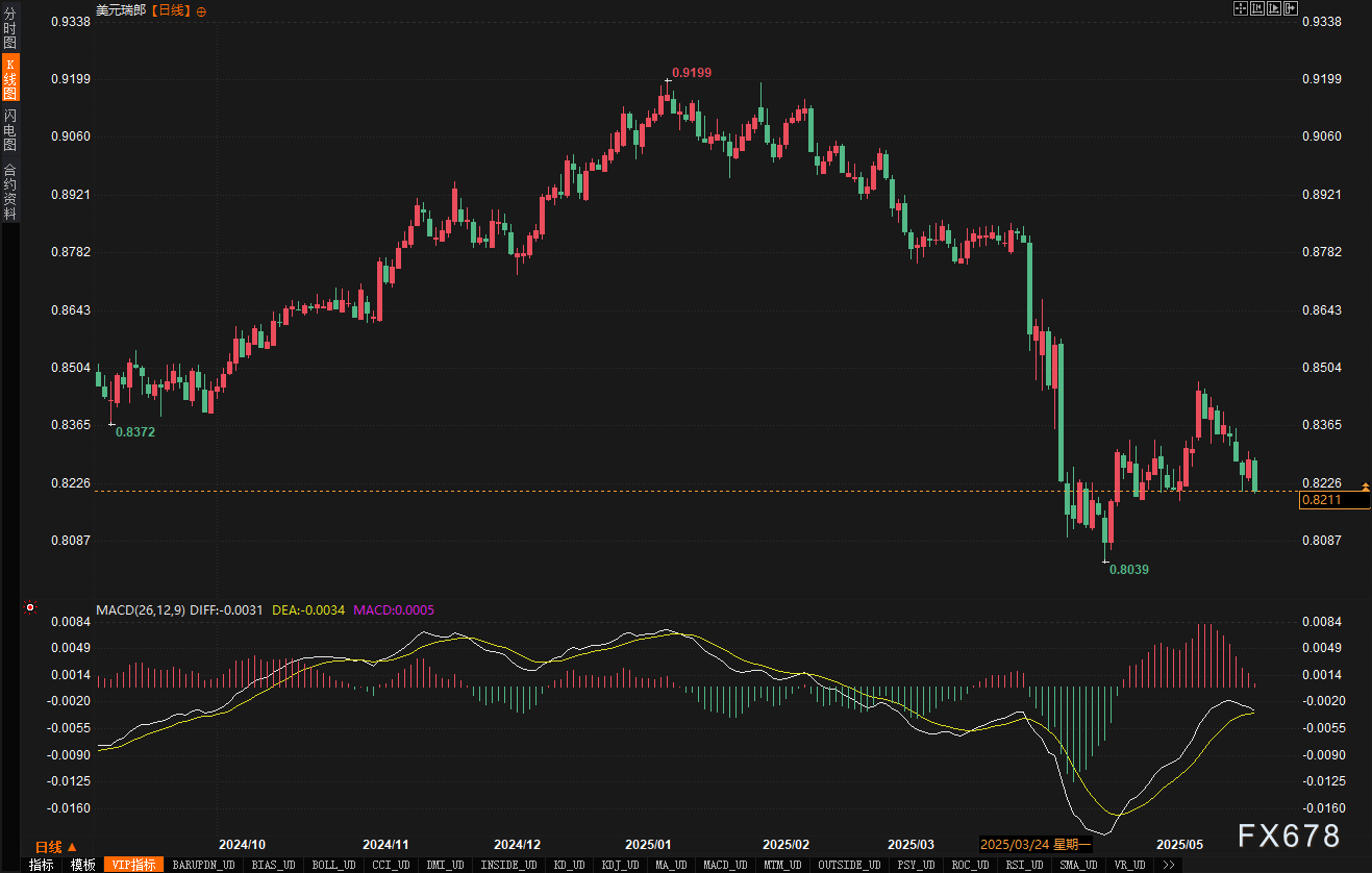 市场分析:瑞郎作为传统避险货币,在全球贸易紧张局势下表现稳健,短期内可能继续受益于避险资金流入。