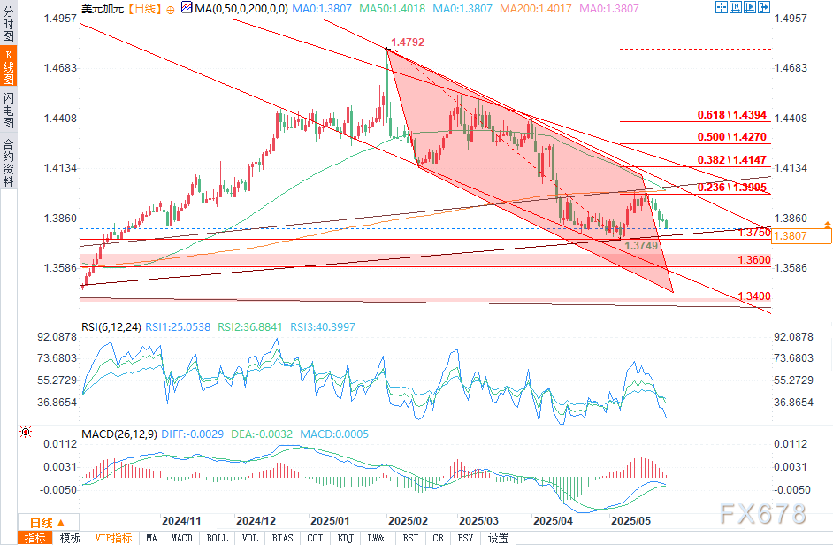 随着空头瞄准4月低点1.3748,长期支撑趋势线成为关注焦点。