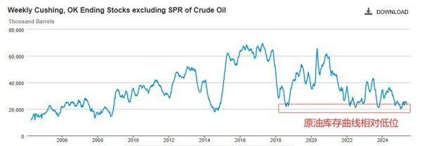 本周三不特定时间,OPEC+将召开第39届部长级会议,会议的重点是石油增产幅度和持续时间问题。根据5月3日的声明,OPEC+成员国将会在6月份增产41.1万桶,超出市场预期。增产的理由是:石油库存处于低位。根据美国俄克拉荷马州库欣地区的原油库存曲线看,原油库存确实处于长周期的相对低位。但是,这种相对低位的状态已经维持较长时间,一直没有出现反弹迹象,意味着需求面并没有增长迹象。如果本周三的OPEC+会议再次超预期增产,在需求面疲软的情况下,国际油价恐遭显著冲击。