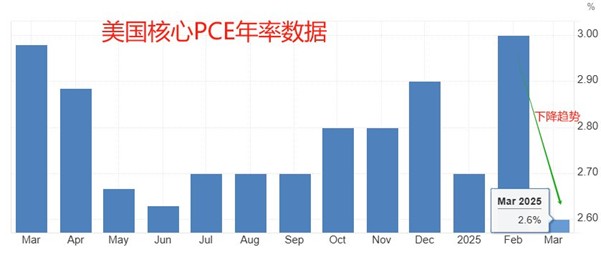 本周五20:30,美国商务部将公布美国4月核心PCE物价指数年率,前值为2.6%,预期值持平。核心PCE数据更符合美国消费者的消费习惯,更能代表通胀率变化,是美联储调整货币政策时的重要参考。如果4月份核心PCE数据如预期一般保持不变,意味着美国通胀率在4月份变化不大,美联储没有必要调整货币政策,这将提振美元指数。如果数据出现意外下降,尤其是降幅较大的情况,意味着当前的利率水平过度抑制消费需求,美联储重启降息的时间点将提前,这将对美元指数形成拖累。