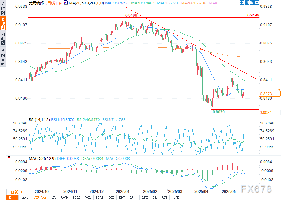 周三(5月28日)欧盘时段,美元兑瑞郎价格波动较为频繁。早盘时段价格在一定区间内震荡,随后出现明显上升,达到相对高位后又开始回落,整体呈现出先扬后抑的态势。