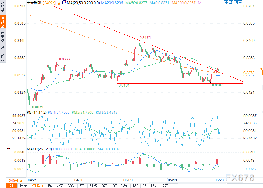 (美元兑瑞郎4小时图 来源:易汇通)