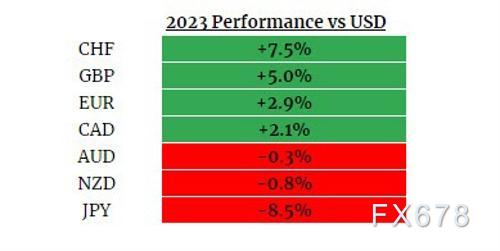 欧洲货币充分利用了美元的下跌。尽管市场认为欧洲央行和英国央行明年将加快降息,欧洲一些货币相对于美元还是涨了。或许是因为欧洲的降息论调没有美国那么普遍,美联储降息的信念比欧洲更坚定。