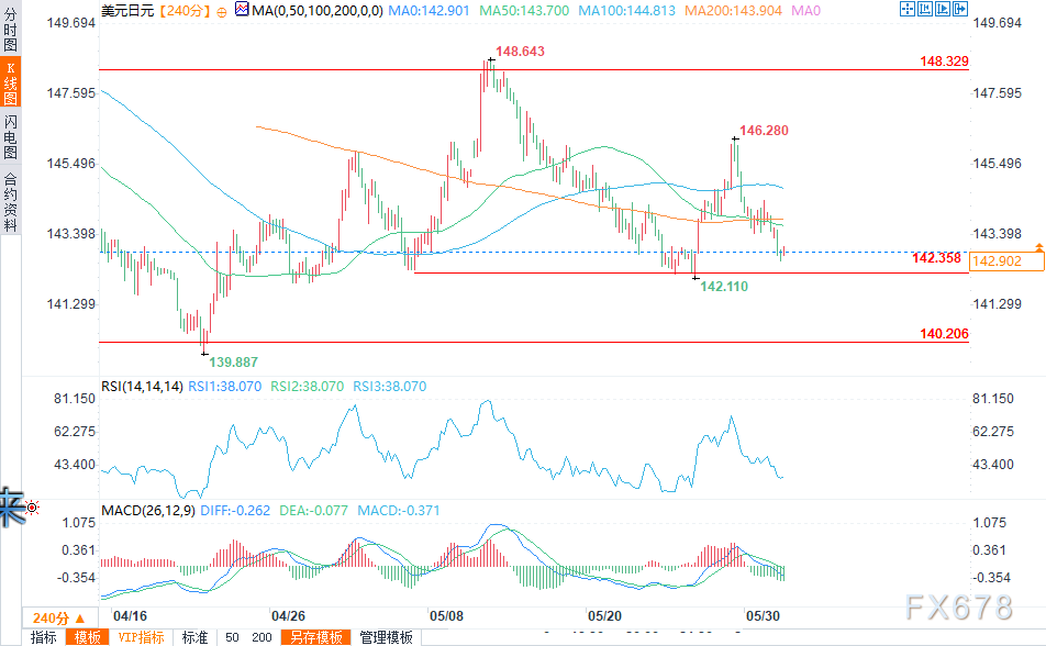 北京时间21:53,美元/日元报142.855/866,跌幅0.83%。