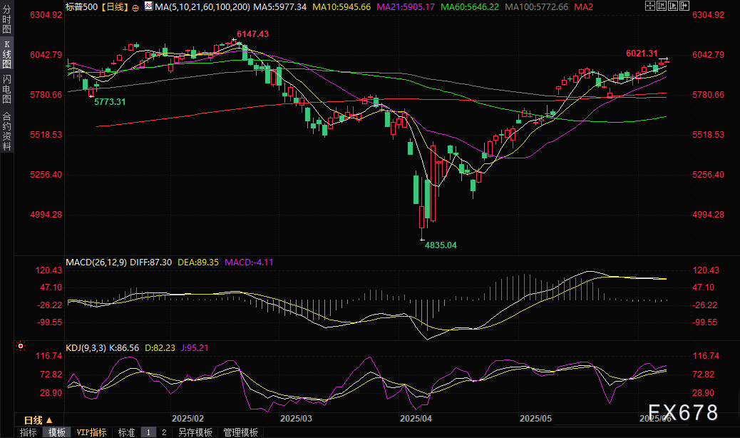 随着美股市场持续升温,标普500指数在上周五(6月6日)重复6000点大关,创下自2月份以来的最高水平,距离历史最高点仅一步之遥。机构投资者对美股的态度也发生了显著转变,从谨慎观望转为积极看涨。这是否意味着一场席卷市场的“融涨”行情即将来临?