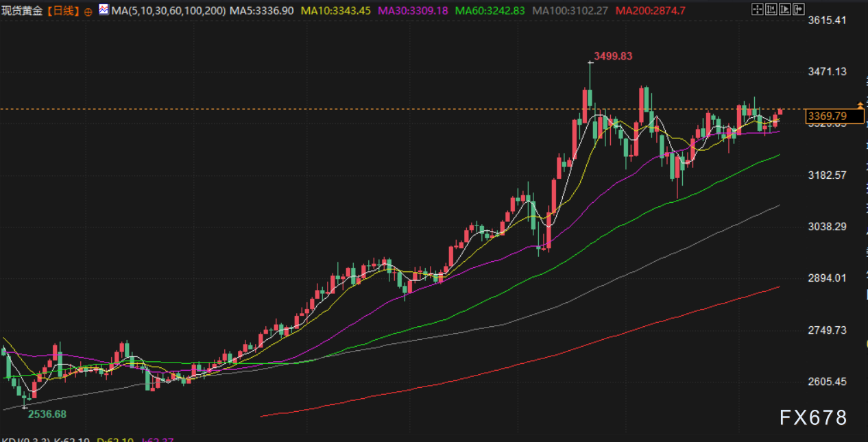 周四(北京时间6月12日),现货黄金上涨,交投于3366.50附近,尽管贸易传来乐观消息,但是美国通胀数据低于预期,增强了投资者对美联储将在9月开始降息的预期,同时由于中东地区安全问题加剧,美国正准备撤离伊拉克大使馆,增加了市场的避险情绪,而油价也因此上涨,美原油上涨近1%,早间开盘一度攀升至69.29美元/桶的两个月新高。
