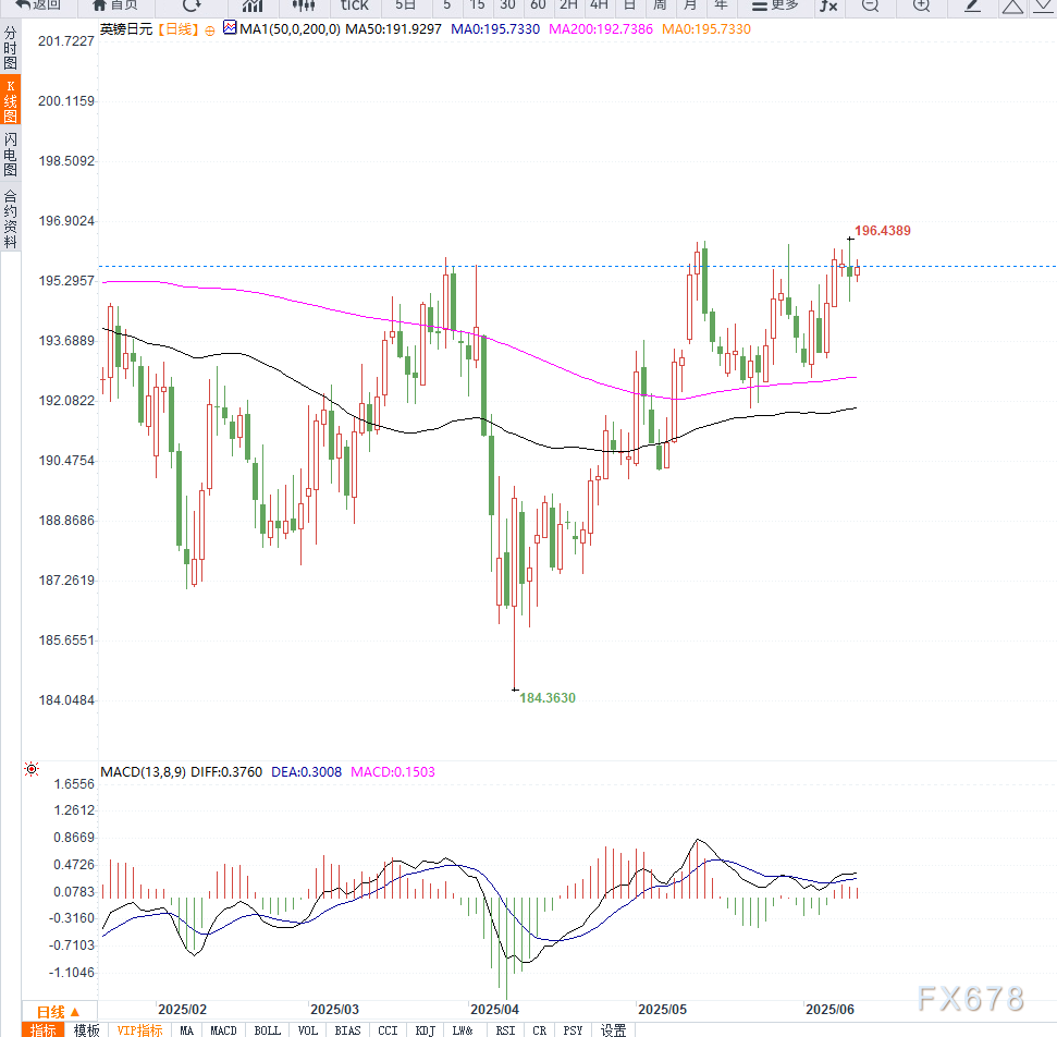 在全球市场风险偏好回暖背景下,英镑兑日元维持强势整理格局。周三欧洲早盘,GBP/JPY连续第三日窄幅波动,交投于195.60附近,距周二创下的五个月高位196.45仅一步之遥。当前市场整体对风险资产的偏好上升,令避险货币日元持续承压。
