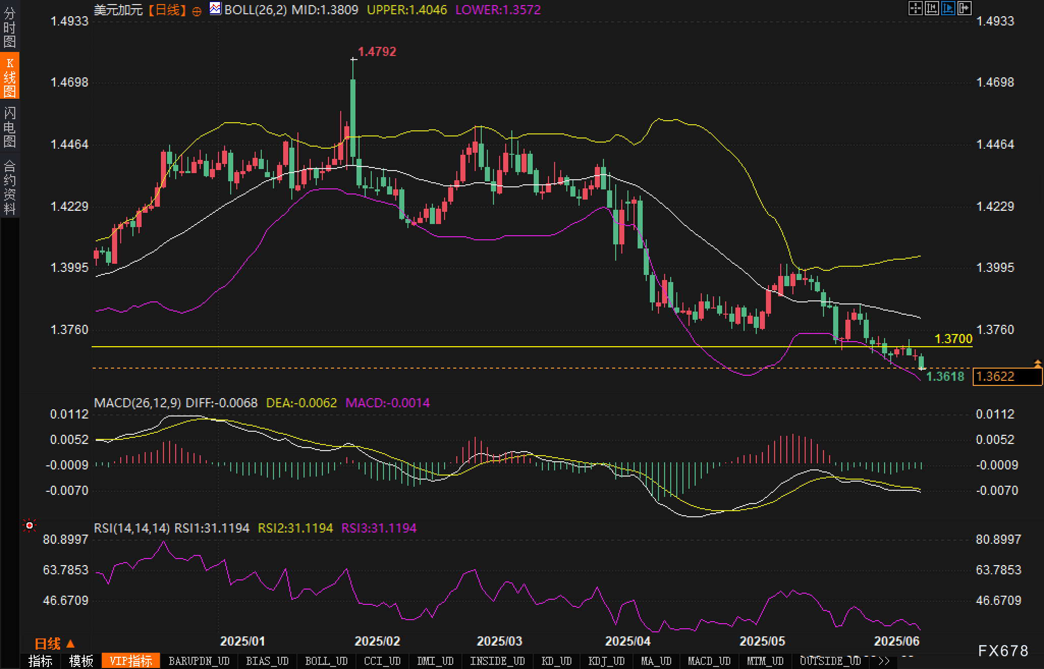 分析认为若汇价有效守住1.3572-1.3600支撑区域,并伴随RSI底背离及MACD死叉修复信号,则存在短期技术性反弹可能,上方初步阻力仍看1.3700,若能突破或将打开至1.3800空间。