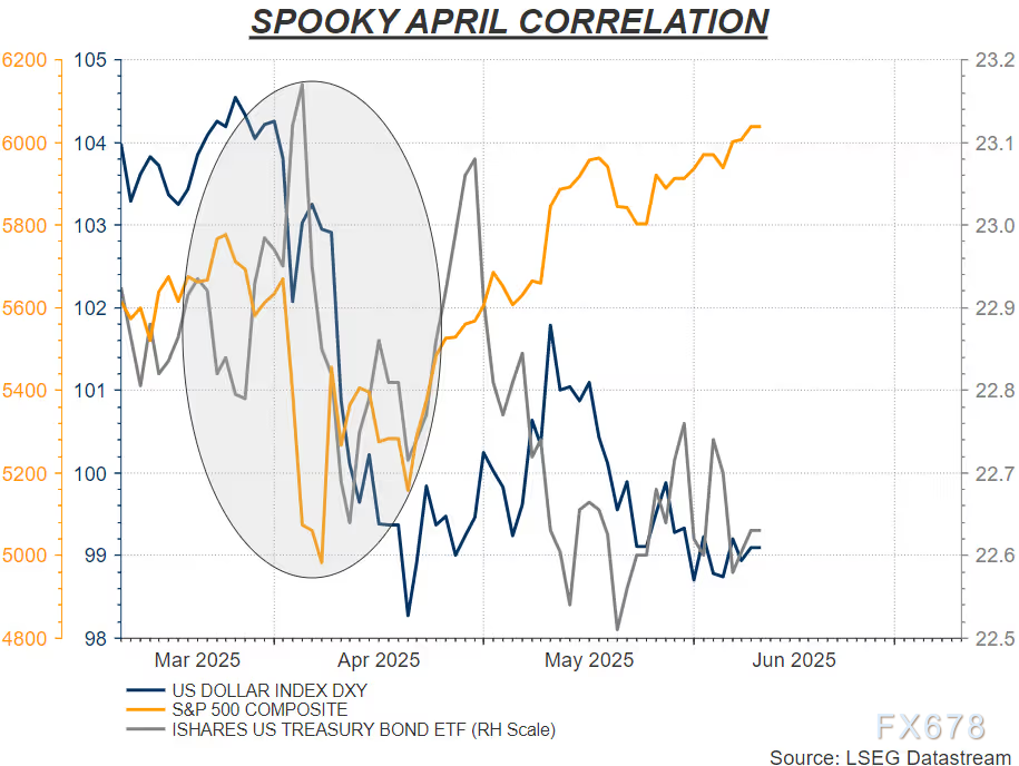 图:美元指数、标普500指数、iShare美债上市交易基金(ETF)4月同步大跌