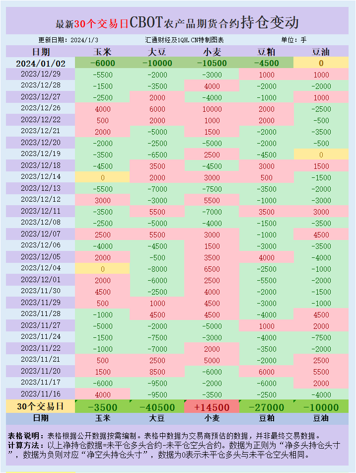 CBOT持仓变动情况