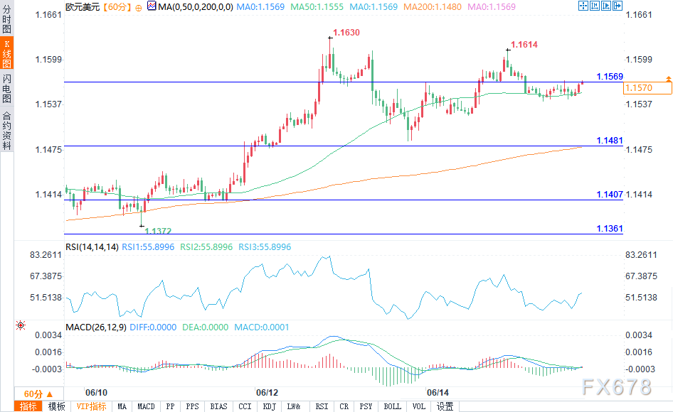 周二(6月17日),欧盘时段,欧元/美元盘中报1.1570/71,涨幅0.10%。当前价格在 1.1569 关键位附近震荡,若有效跌破,或打开下行空间;若站稳并向上突破,有望延续多头。