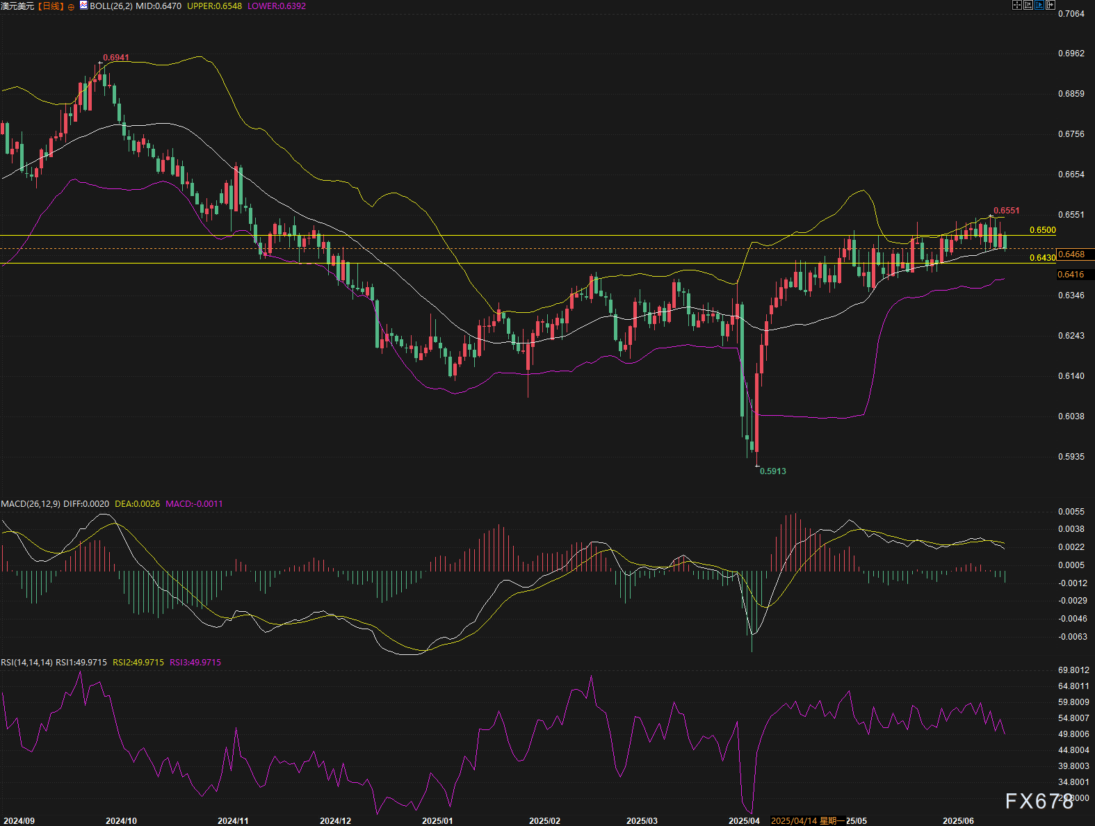 短期展望方面分析认为,澳元/美元汇价预计将维持0.6430-0.6550区间振荡格局。若汇价能够站稳0.6500关口并放量突破,下一目标位指向0.6550区间上沿。反之,若跌破0.6445支撑位,汇价可能加速下行至0.6400整数关口。