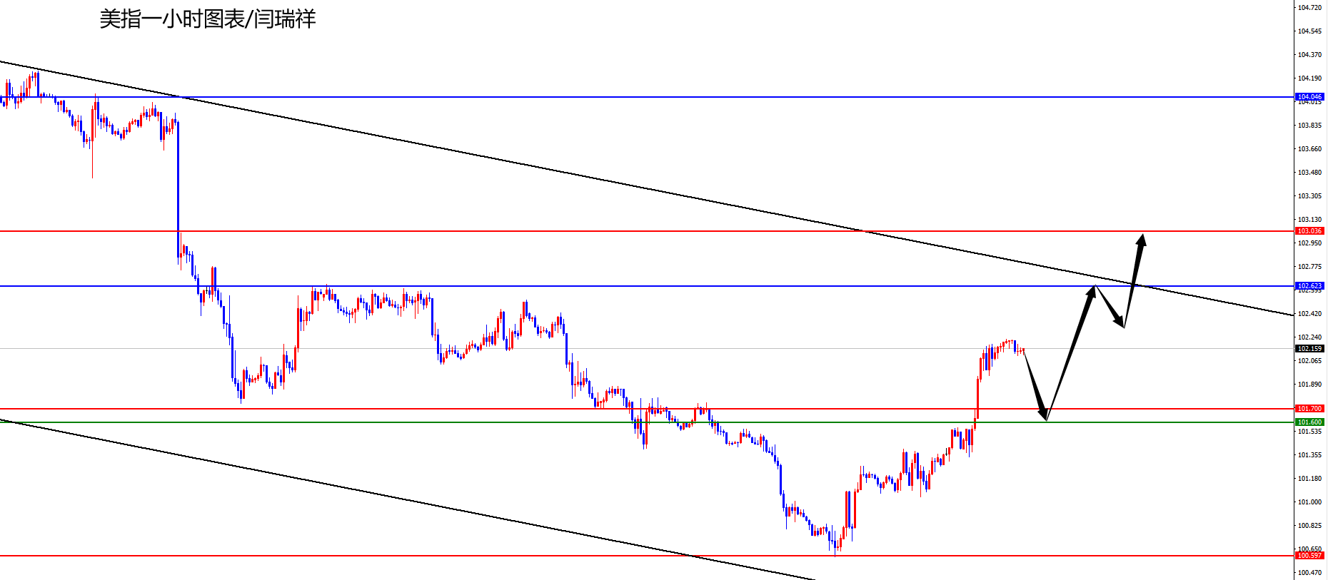 美指101.60-70区间多,防守5美金,目标102.60-103