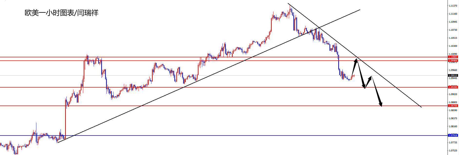 欧美1.0990-1.1000区间空,防守40点,目标1.1000-1.0980
