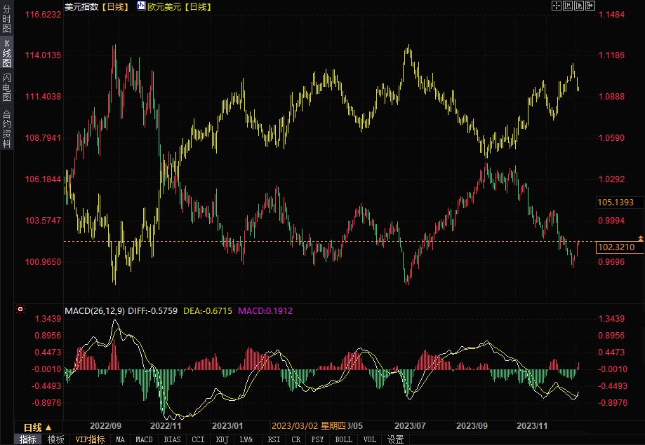 (美元指数、欧元/美元日线图 来源:易汇通财经)