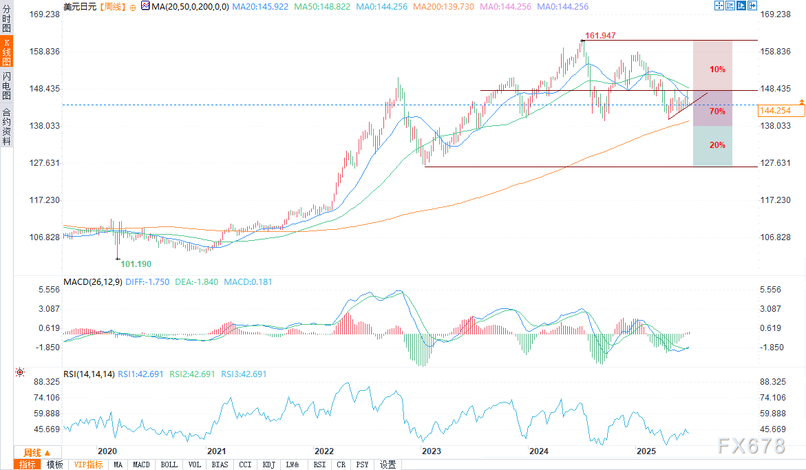 (美元/日元周线图 来源:易汇通)