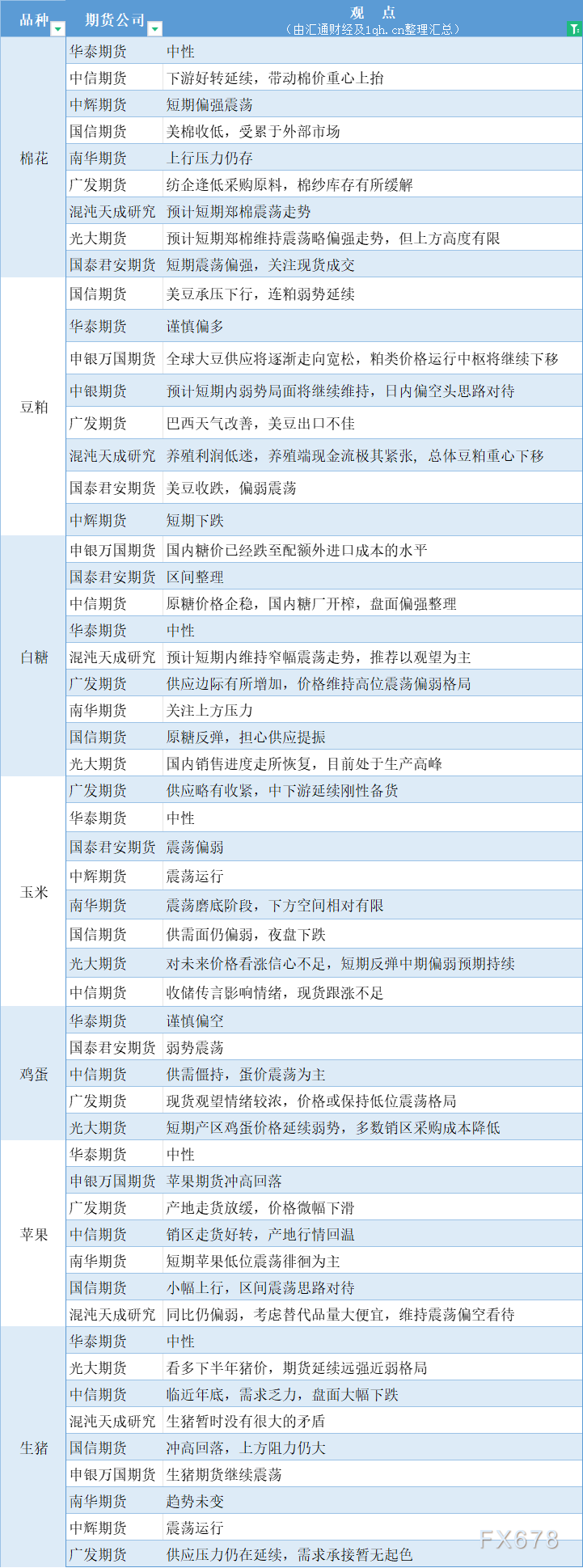 期货公司观点汇总一张图:1月5日农产品(棉花、豆粕、白糖、玉米、鸡蛋、生猪等)
