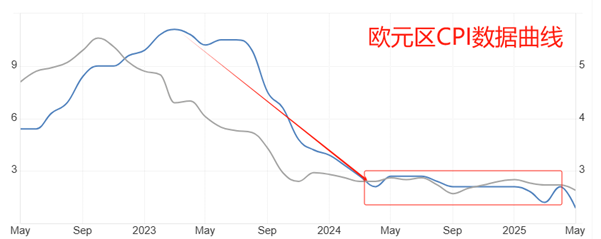 历史数据看,欧元区的CPI数据处于下降趋势。欧元区核心CPI年率在2023年3月触顶,随后开启回落走势。2024年4月份至今年2月份,数据呈现处震荡特征。今年3月份开始,数据波动性加大,5月份读数大降0.4个百分点。据此判断,欧元区的通胀率经过近一年的平稳期后,将开启新一轮下降周期。对于欧央行来说,更快的降息节奏可以避免通胀数据过度下降。