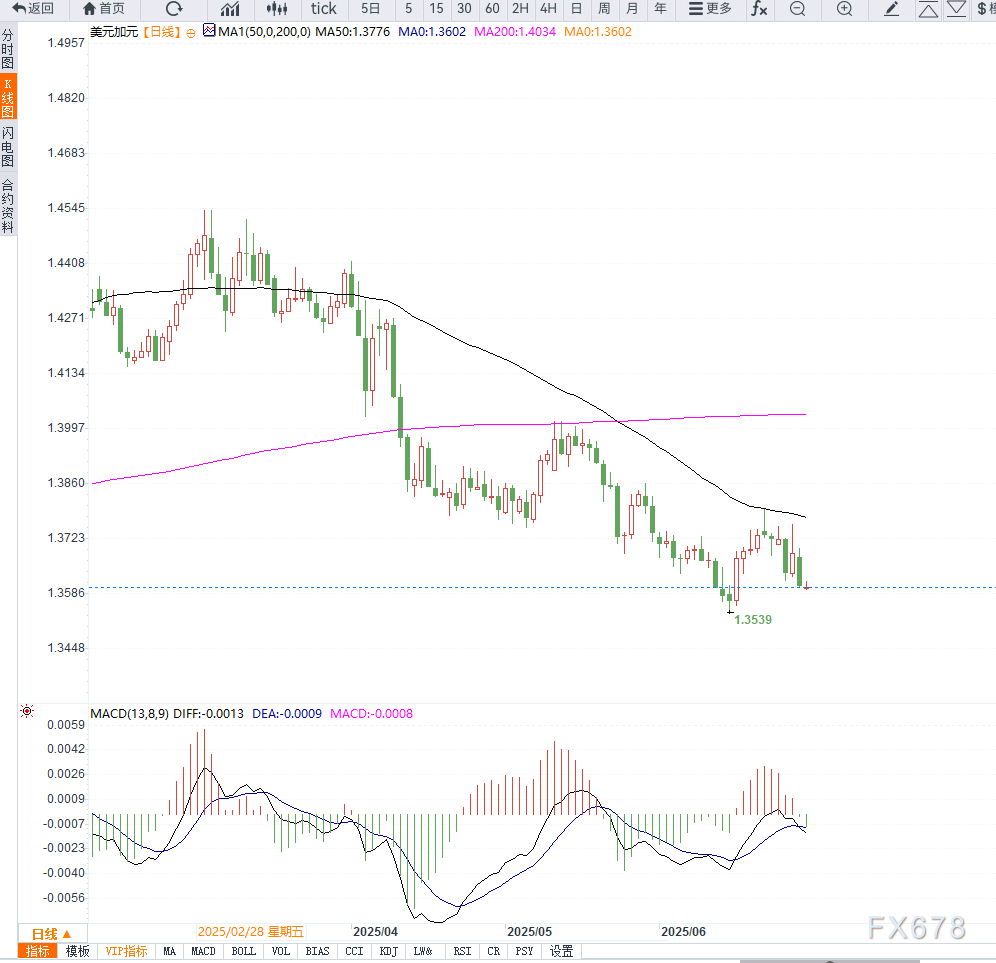 美元兑加元在连续下跌后,于周二欧洲早盘维持在1.3600附近震荡整理。尽管整体波幅收窄,但市场情绪变化与政策动态正悄然重塑汇价结构。