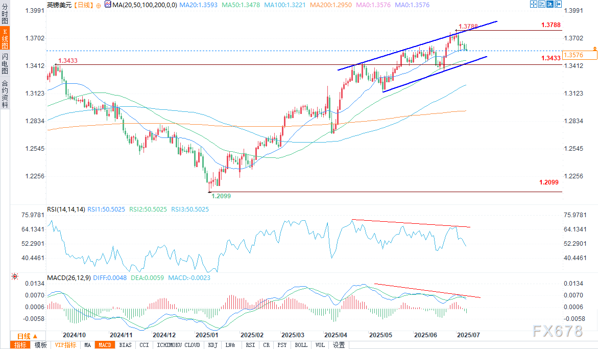周二(7月8日)欧盘时段,因特朗普延长关税期限后美元指数小幅上涨,英镑/美元汇率出现回落。该货币对从今年以来的高点1.3788跌至1.3575附近。
