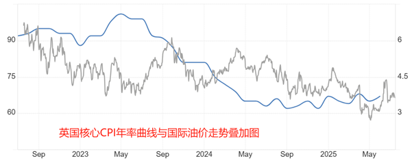将英国核心CPI年率曲线与国际油价走势图进行叠加,可以发现,两者长期走势存在共振现象。当国际油价持续下跌时,英国的通胀率也倾向于回落,反之亦然。6月份,国际油价上涨6.88%,盘中最大涨幅一度达到28%,最高点触及78.4美元。国际油价的上涨对燃料成本和运输业价格产生直接影响,不止英国的通胀率在上升,美国的通胀率也因为国际油价的上涨而升高。