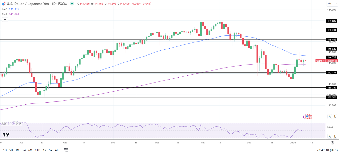 美元/日元突破144.713阻力位,将使多头在50日均线和146关口运行。