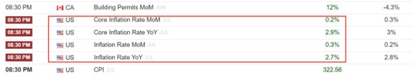 ATFX前瞻:本周即将发布的经济数据重要性由高到低分别为:美国7月CPI和PPI数据、澳洲联储利率决议、英国二季度GDP数据,接下来做逐一解读。