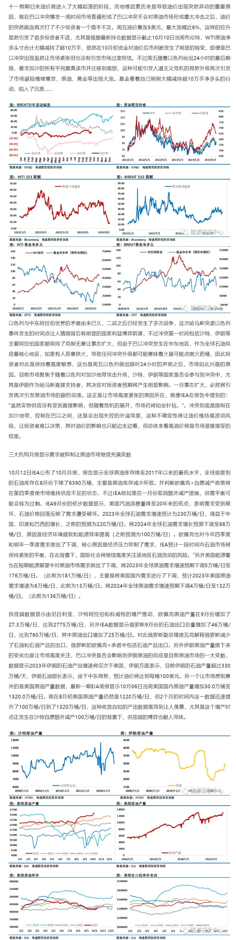 十一假期归来油价就进入了大幅起落的阶段,而地缘因素历来是导致油价出现突然异动的重要原因,就在巴以冲突爆发一周时间市场普遍形成了巴以冲突不会对原油市场形成重大冲击之后,油价的突然飙涨再次打了不少投资者一个措手不及。