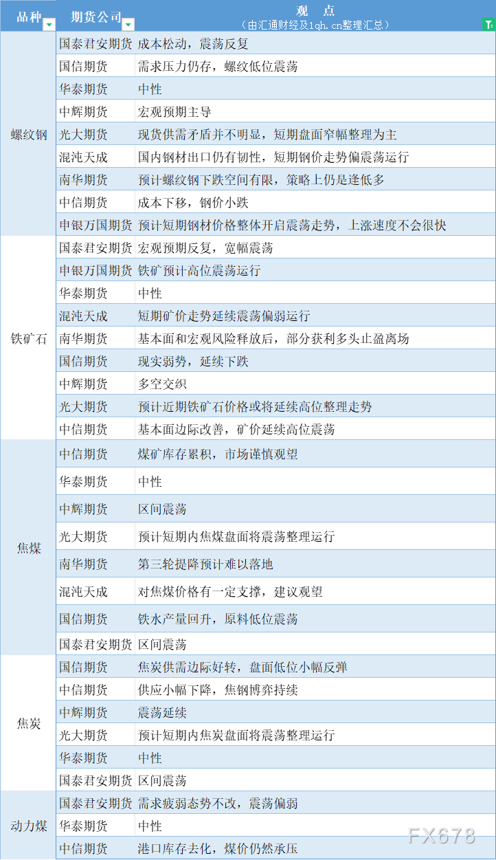期货公司观点汇总一张图:1月16日黑色系(螺纹钢、焦煤、焦炭、铁矿石、动力煤等)