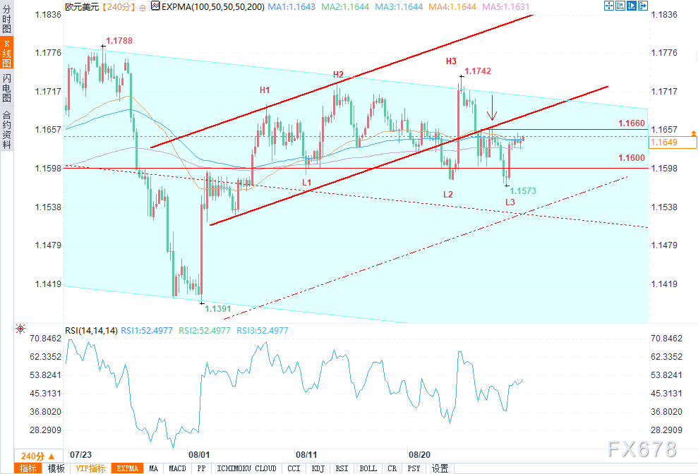 阻力位方面,1.1660水平尤为关键——此前空头正是在此位置成功突破临时上行轨迹的下轨,且该区间同时与“扩音器形态”的中轴重合。