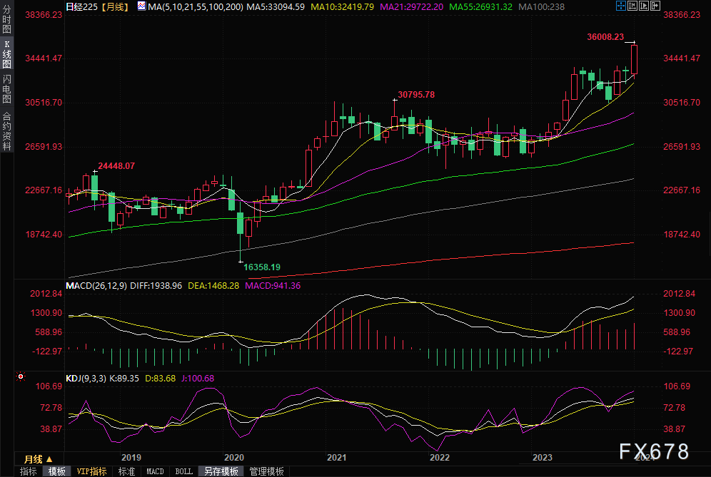 日股开局强势,自当地时间1月5日以来,开启连涨行情,当地时间1月15日,在金融板块和航运板块的带动下,日经225指数突破36000点,为1990年2月22日以来首次。今年以来日经225累计上涨了6%,距离1989年创下的历史峰值38915.9点还有6%的距离。