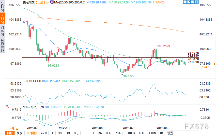 若价格跌破97.859支撑位,则可能进一步下探97.556和97.109。在下次就业报告、CPI数据公布或美联储政策指引出现重大变化前,美元指数大概率将在该区间内震荡整理。