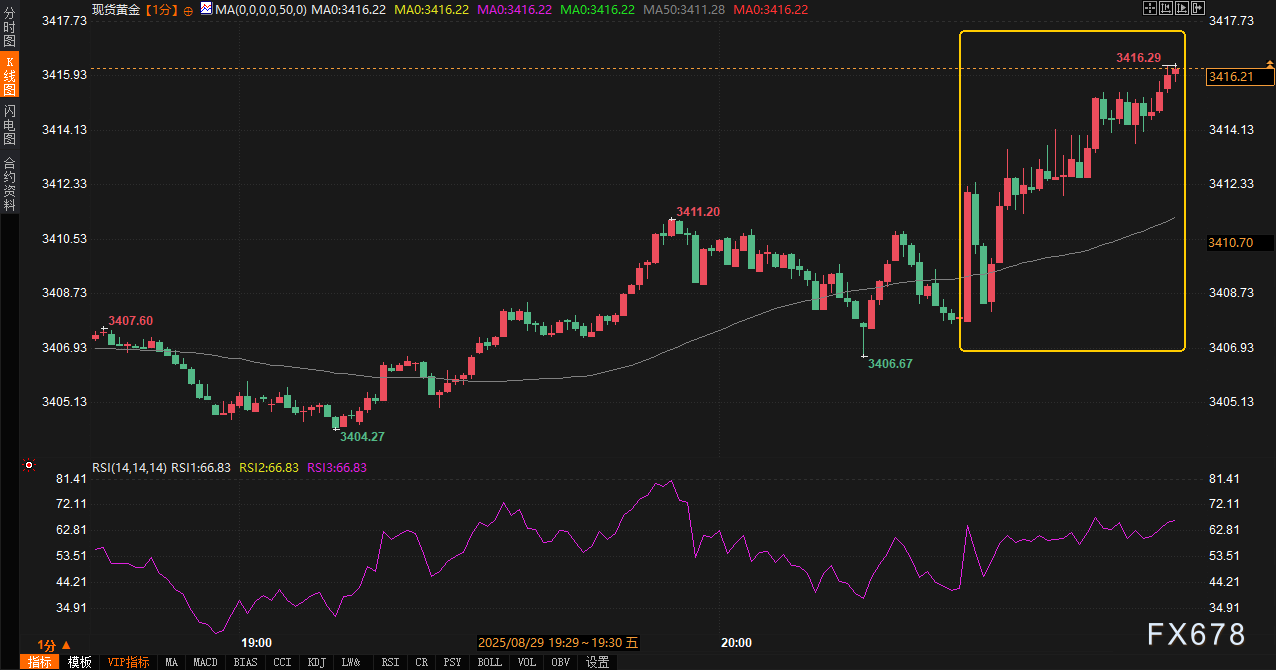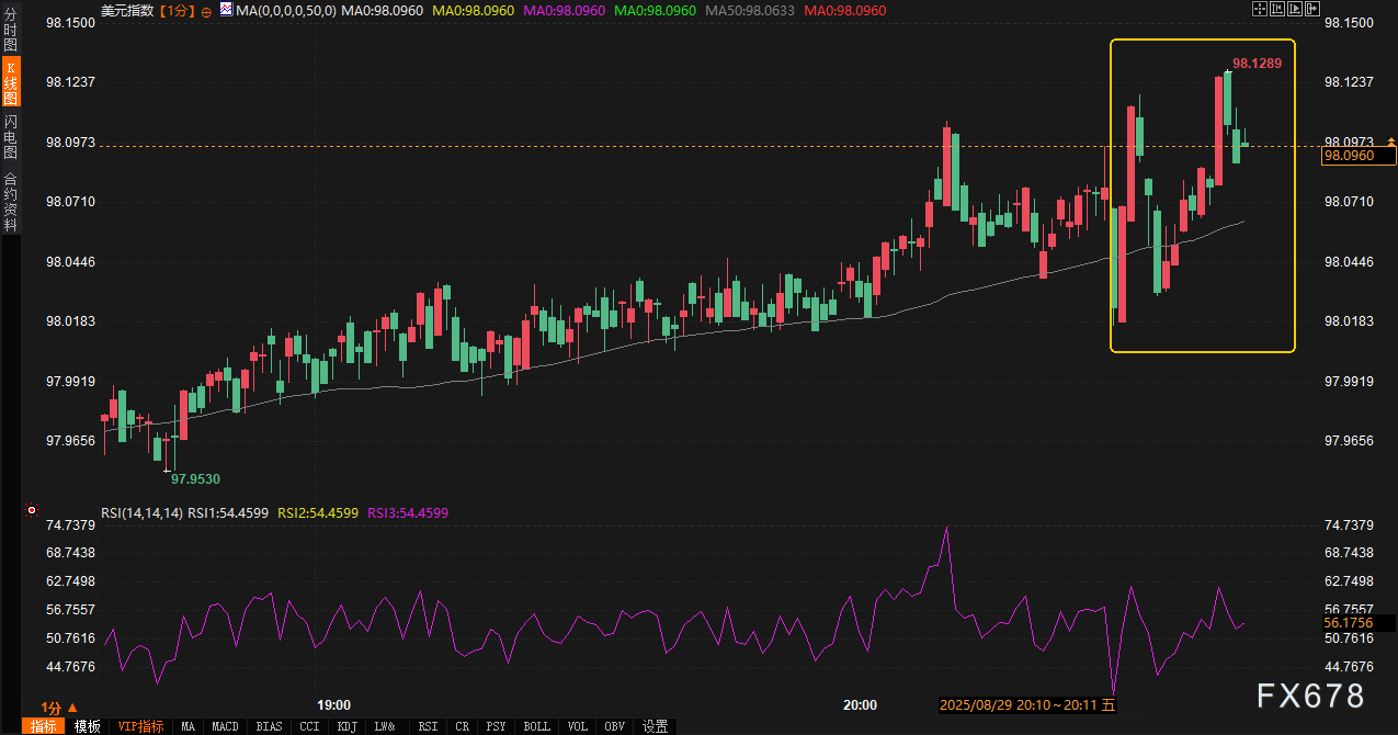 PCE数据公布后,市场反应迅速且分化。美元指数在数据公布后短线下跌5点至98.0260,但随后快速反弹,较公布前上涨约6点,显示市场对数据的消化过程充满波折。现货黄金则短线拉升4美元至3409.67美元/盎司,反映了避险情绪的短暂升温。美股三大指数在数据公布后波动加剧,纳斯达克综合指数日内跌幅一度扩大至0.8%,标普500指数则在窄幅震荡中寻找方向。