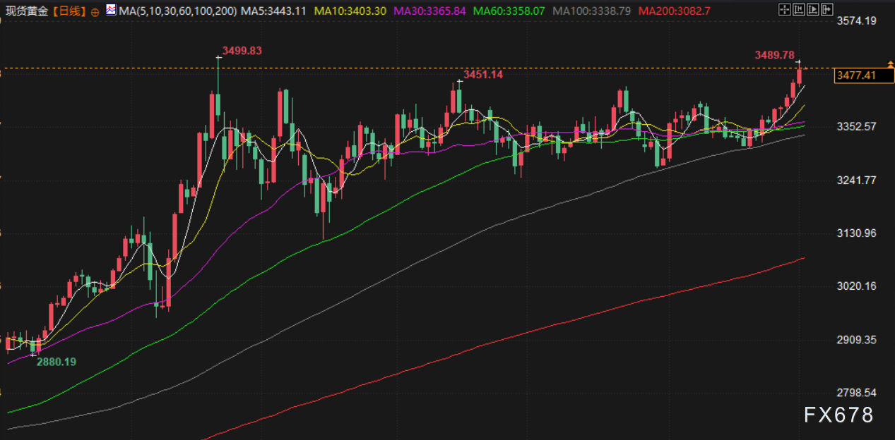 金价周一触及逾四个月高位至3489.78美元/盎司,受美联储降息押注与美元走软提振;银价则是自2011年以来首次突破每盎司40美元。