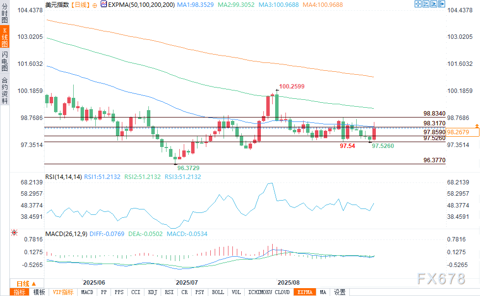 周二(9月2日),受美国国债收益率飙升以及全球金融市场对“美国法院裁决特朗普时期多数关税违宪”的反应影响,美元指数(DXY)大幅上涨并突破关键技术位。该指数突破位于98.000的50日移动平均线(目前已成为短期支撑位),盘中最高触及98.5895。