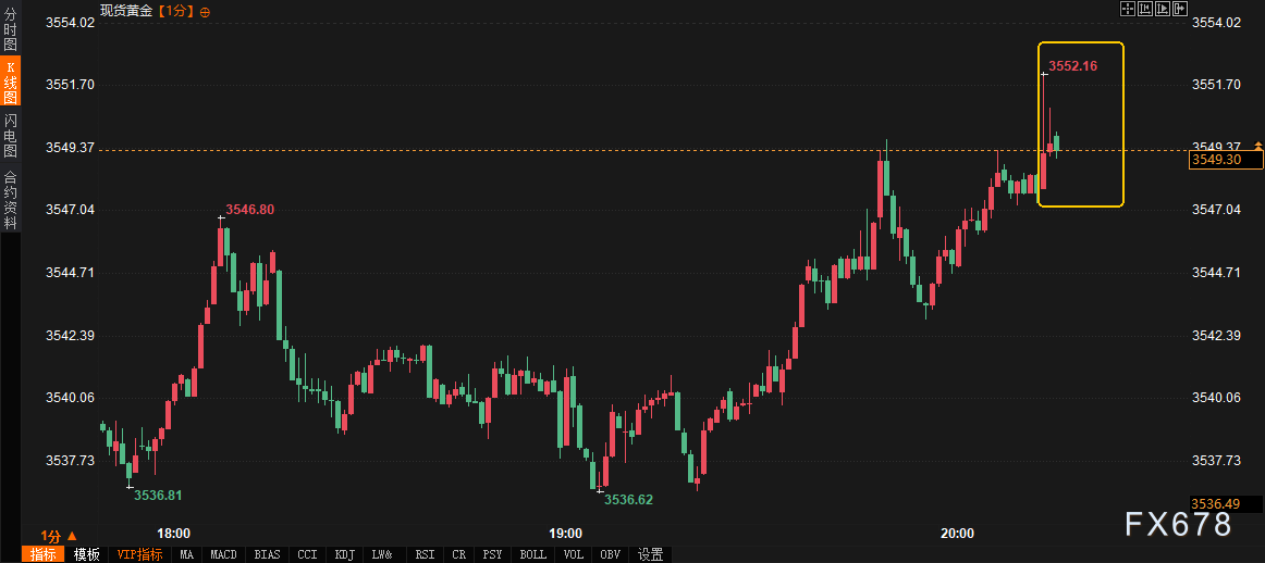挑战者裁员数据公布后,美元指数短线下挫约3点,反映市场对裁员人数超预期的担忧,但随后趋于稳定。20:15的ADP就业数据公布显示,8月私营部门新增就业5.4万人,低于预期的6.5万人,且7月数据上修至10.6万人。数据公布后,美元指数进一步下跌6点至98.3,现货黄金短线上涨4美元,最高触及3552.16美元/盎司,但很快回落至3546.20美元/盎司。20:30的初请失业金数据进一步加剧市场对劳动力市场放缓的预期,初请人数升至23.7万人,高于预期的23万,同时续请失业金人数小幅下降至194万人。美债市场反应温和,10年期国债收益率跌幅收窄至4.192%,较日内低点回升。