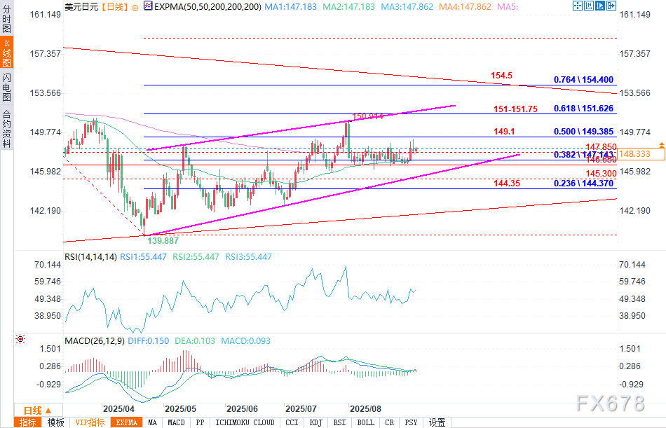 周四(9月4日),欧洲交易时段,美元/日元货币对升至148.40附近。周三美元出现回调后,今日重拾涨势,带动该货币对小幅上行。