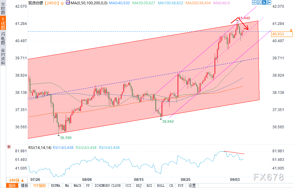 周四(9月4日),现货白银价格小幅走跌。从现货白银走势图可见,昨日白银价格攀升至每盎司41.40美元以上。上一次白银达到这一价位还是在2011年9月。现货白银的上涨,得益于黄金价格飙升至历史新高。