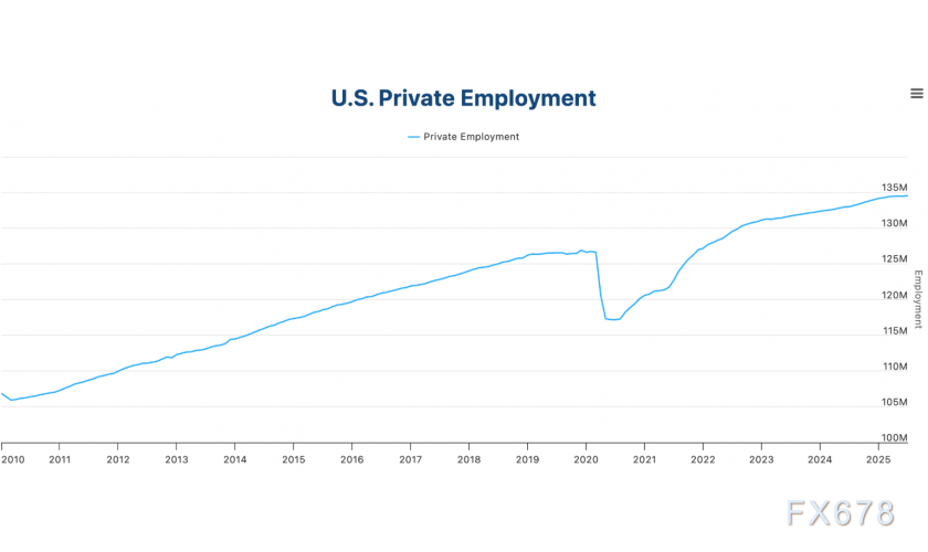 从历史数据维度看,ADP调查作为全美最大的薪资数据处理机构发布的就业指标,通常较官方非农数据提前两天公布,其样本覆盖约40万家企业,常被市场视为非农就业趋势的“前瞻指南”。但需注意的是,这两项数据并不总是保持一致。