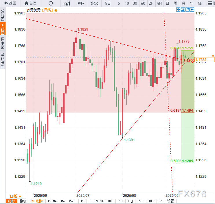 过去一周的关键突破在于多头终于推升出更高高点(虽未突破七月次高点),由此形成1.1780-1.1789阻力区间,若突破该阻力带,将打开冲击三年高点1.1830的通道。
