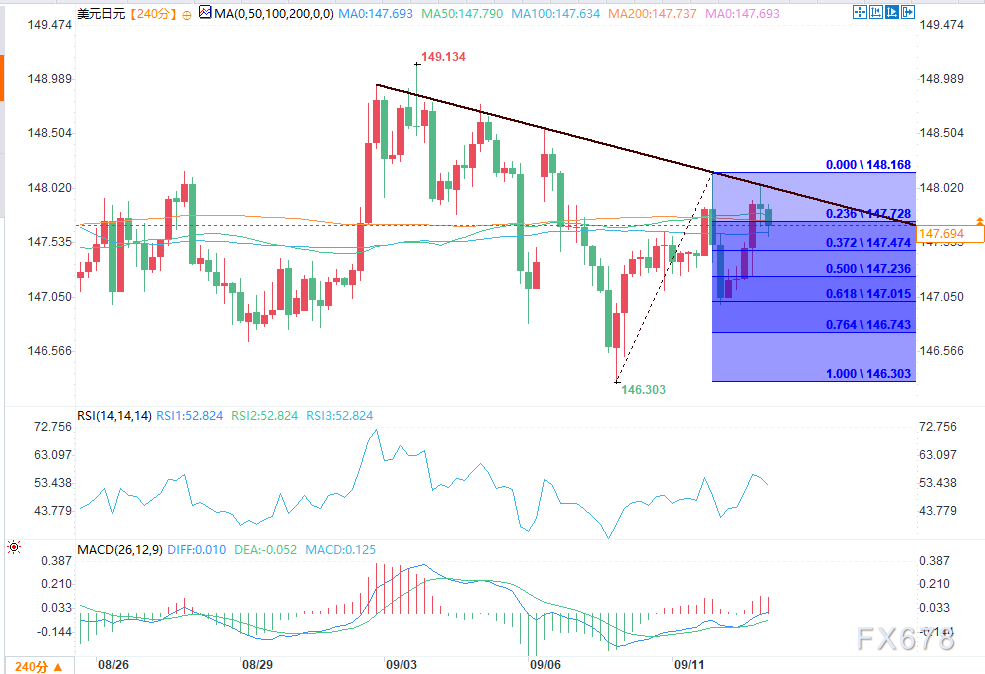 周五(9月12日)美盘时段,美元/日元整体呈现震荡上行态势,从低位逐步攀升,期间有一定的波动,但上行趋势较为明显。