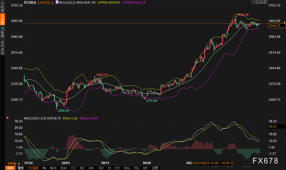 技术面强化了上行动能的预期。在240分钟图上,黄金价格紧贴布林带中轨3641.54下方,上轨3659.82提供即时上限,整体轨迹向上倾斜。MACD指标强势看多,DIFF线8.71高于DEA线11.80,柱状线-6.17显示正背离,确认多头主导。前高3674为关键阻力,近期低点3611转为支撑。支撑区间3623-3641若企稳,将视作买入窗口;突破3659-3674阻力则开启上行突破。日内焦点在3641关口,若债市收益率续跌,该水平易守并向上扩展,地缘与通胀因素将成为催化剂。
