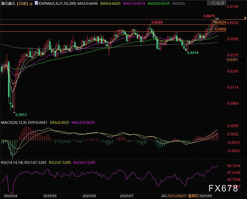 周二(9月16日)澳元兑美元小幅回调跌0.06%,交投于0.6664附近,受美联储即将公布利率决议结果以及全球权益市场持续活跃提振,澳元近期持续走强。澳元在全球外汇市场拥有独特地位,是一种可以使用完全自由浮动汇率制度同时还有高市场影响力且币值稳定的币种。这一优势源于三重支撑。叠加大宗商品属性受全球经济回暖利好,短期澳元有望延续上涨态势。