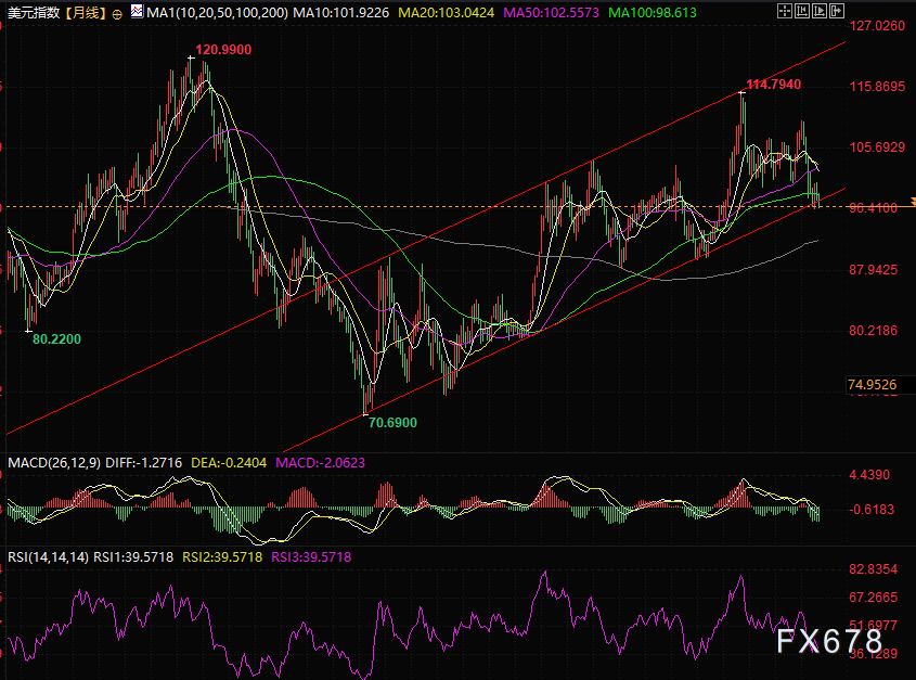 (美元指数月线对数坐标图)