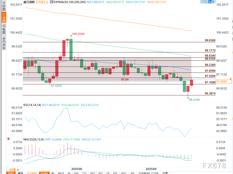 周四(9月18日)美盘时段,美元指数(DXY)在周三小幅反弹的基础上大幅上涨,因美债收益率攀升重新引发市场对美元的需求。美元指数的上行势头使其逼近50日均线98.088及关键枢纽位98.238,这两个水平均为技术面交易员密切关注的点位。