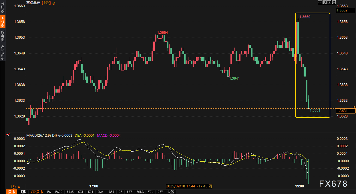 对比历史,2024年8月降息(5.25%至5.00%)曾引发英镑暴跌50点,10年期收益率飙至4.80%,市场解读为“过早宽松”。今次持稳更似2025年6月的“观望模式”,英镑波动仅10点,收益率曲线趋稳。最新报价显示,英镑自8月低点1.3500反弹逾150点,但日内回落抹平部分涨幅,凸显QT放缓的双刃剑效应:缓解债券供给压力的同时,强化“政策未脱离预设路径”的叙事,抑制多头动能。反应佐证了这一转变:决议前,散户热议“美联储降息后,英镑将飙”;公布后,机构迅速平仓,散户跟进抛售,VIX指数短暂逼近15。
