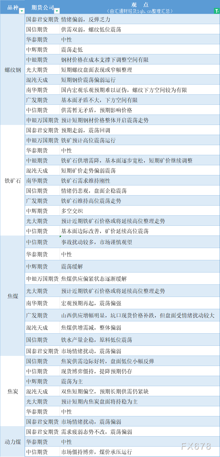 期货公司观点汇总一张图:1月18日黑色系(螺纹钢、焦煤、焦炭、铁矿石、动力煤等)