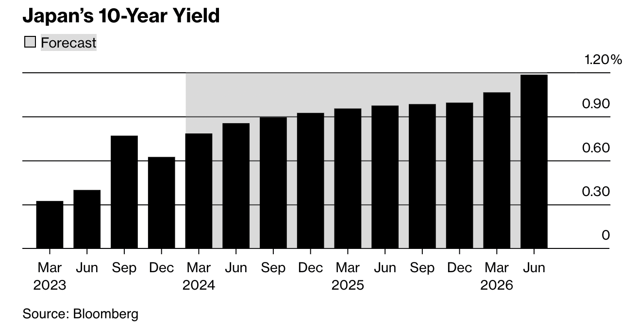 (日本10年期国债收益率预测,来源:彭博社)