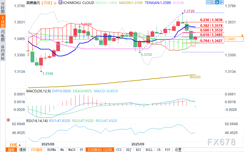 英镑/美元自上周三触及两个半月高点(1.3725)后持续阶梯式下跌后小幅反弹,盘中跌破近期1.3333至1.3725涨势的逾61.8%,并跌破下一道关键支撑位1.3465(日图云顶),目前价格已经略微回升到这个水平之上。