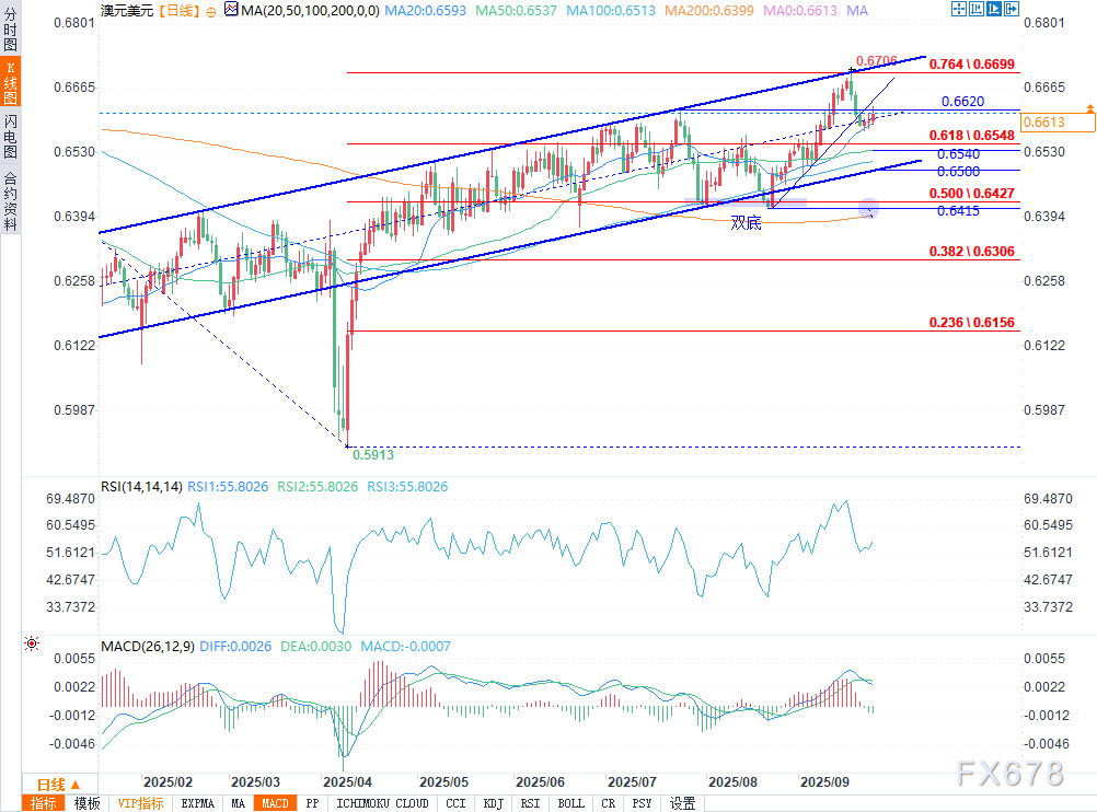 周三(9月24日)欧盘时段,澳元/美元从高点小幅回落至0.6620一线。亚洲交易时段澳元/美元的表现优于所有其他主要货币。